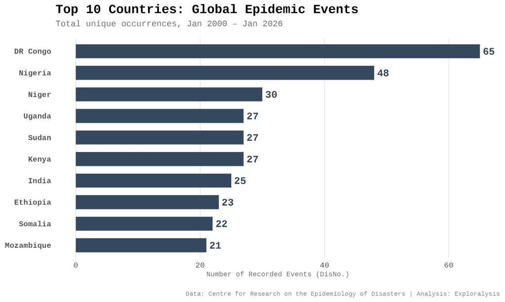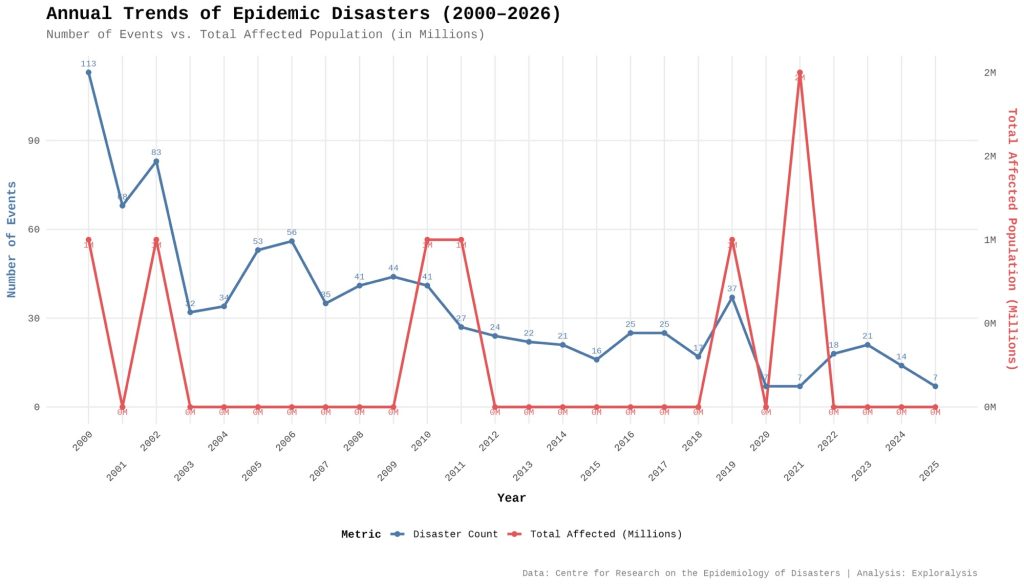 Annual trends of epidemic disasters (2000-2026) (Exploralysis)