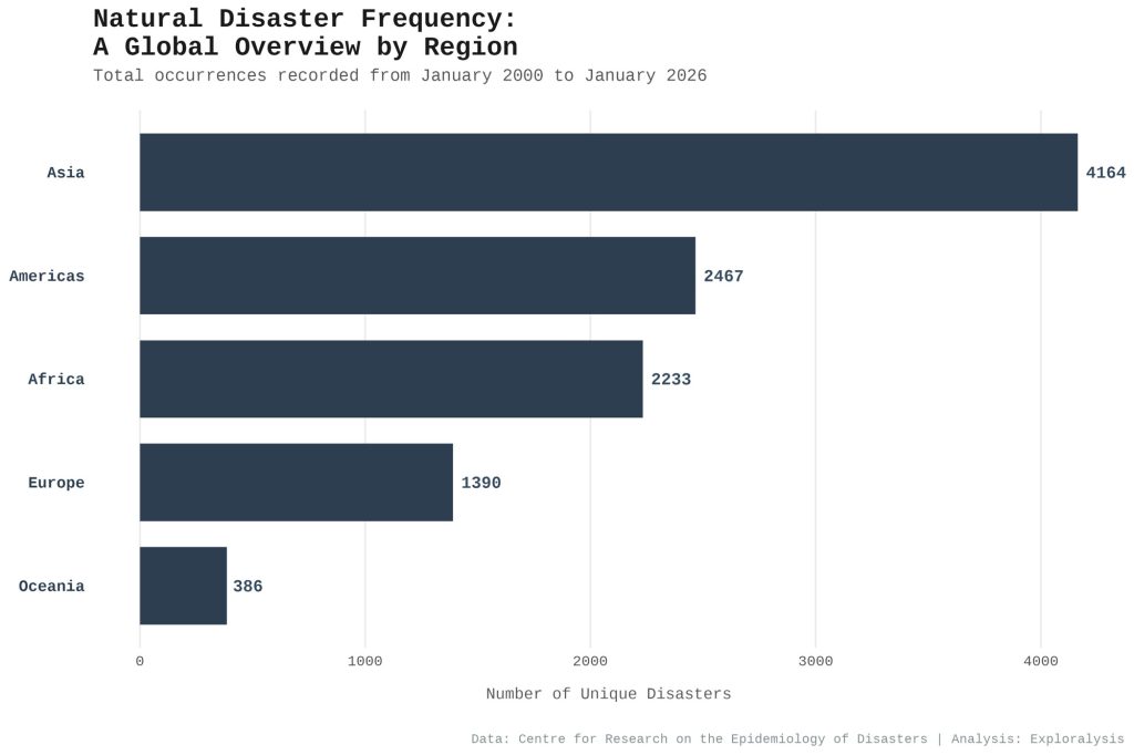 Natural disaster frequency: a global overview by disaster region (Exploralysis)