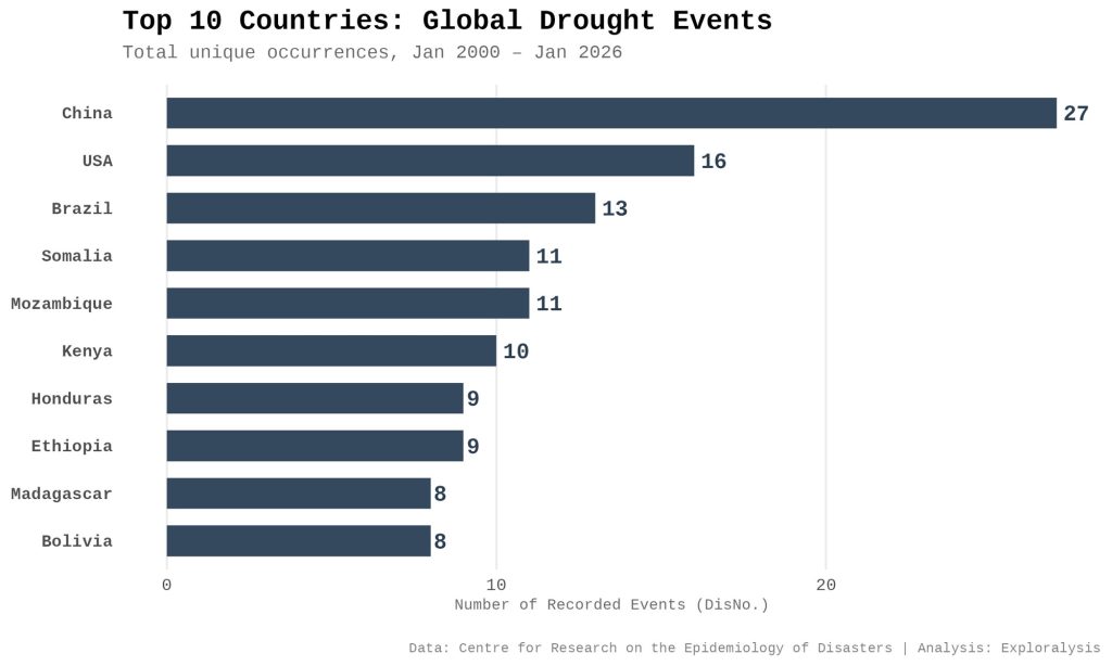 Top 10 countries: global drought events (Exploralysis)
