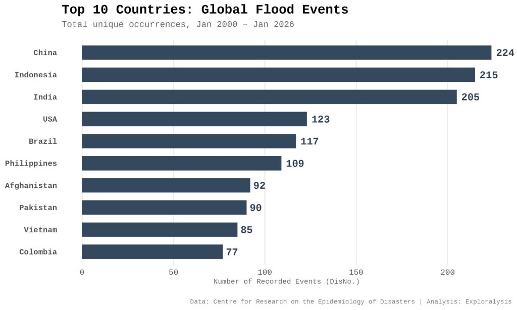 Top 10 countries: global flood events (Exploralysis)