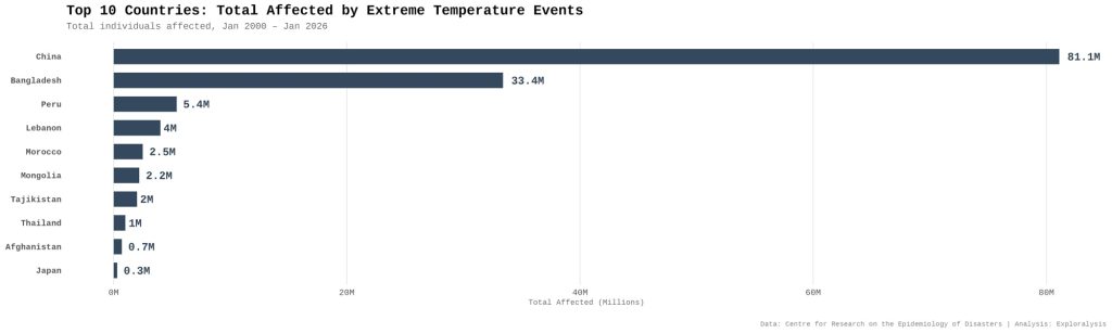 Top 10 countries: total affected by extreme temperature events (Exploralysis)