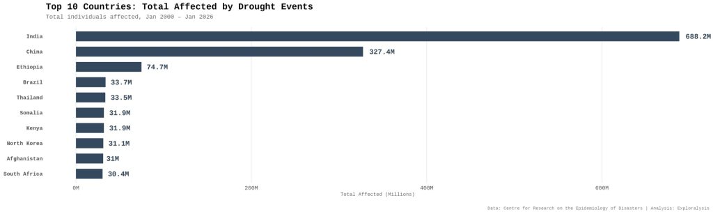Top 10 countries: total affected by drought events (Exploralysis)