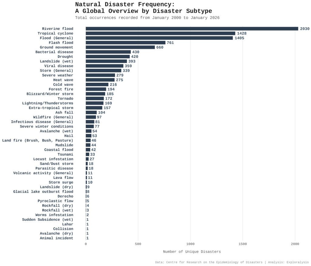 Natural disaster frequency: a global overview by disaster subtype (Exploralysis)