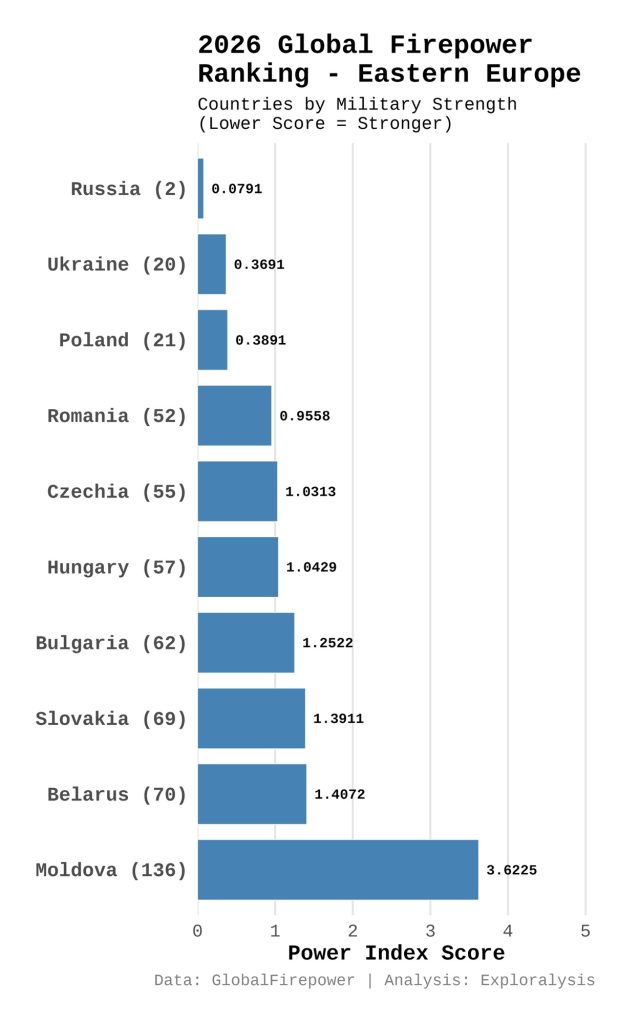 2026 global firepower ranking – Eastern Europe (Exploralysis)