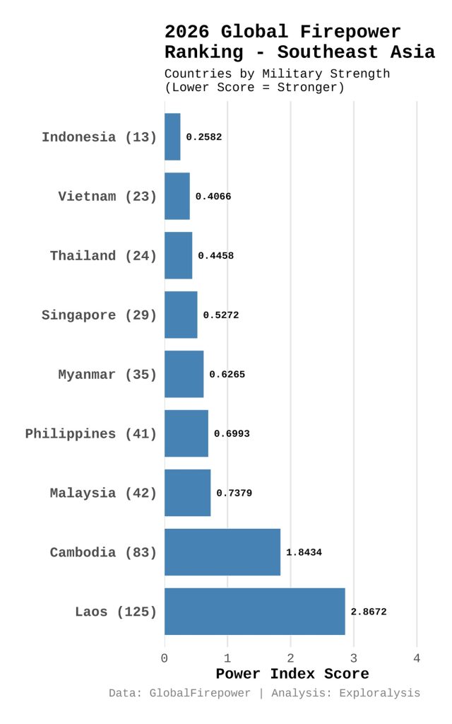 2026 global firepower ranking - Southeast Asia (Exploralysis)