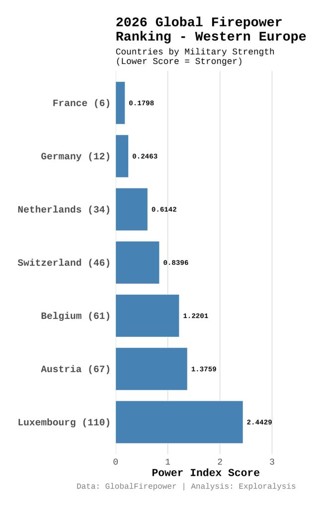 2026 global firepower ranking – Western Europe (Exploralysis)