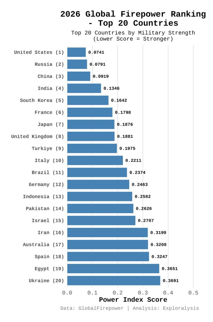 2026 global firepower ranking – top 20 countries (Exploralysis)