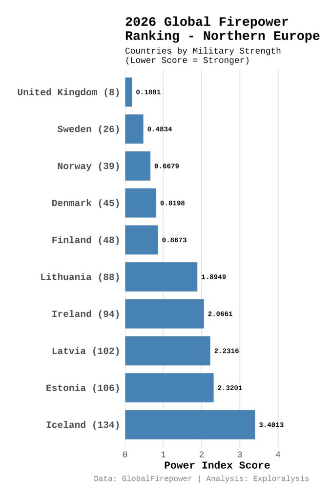 2026 global firepower ranking - Northern Europe (Exploralysis)
