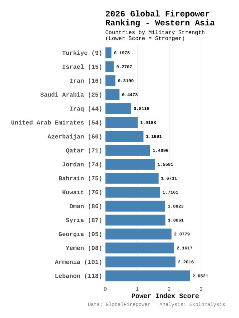 2026 global firepower ranking - Western Asia (Exploralysis)