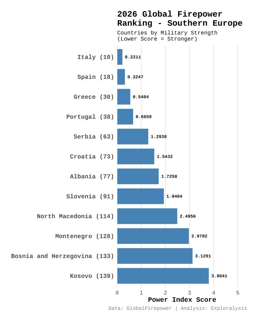 2026 global firepower ranking - Southern Europe (Exploralysis)